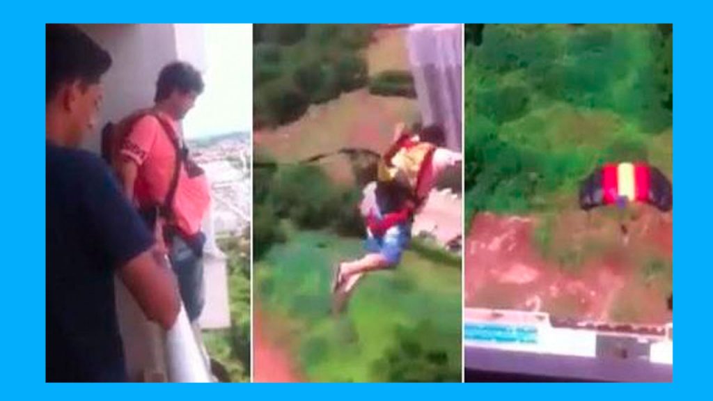 En Brasil, un hombre compró un paracaídas en Internet y decidió probarlo saltando desde un balcón, a unos 25 pisos, ante la presencia de su esposa, hija y amigos. Afortunadamente, el paracaídas se abrió a tiempo y el hombre pudo tocar tierra sin lesiones.